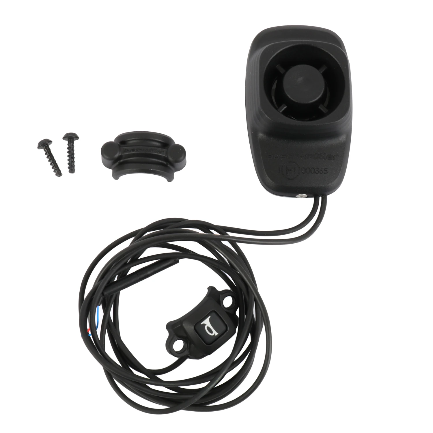 The Busch & Müller horn brings more safety on the road thanks to impressive sound. It can be operated by pushbutton from the handlebars and can be operated with the battery of the e-bike. It is especially suitable for fast S-pedelecs and can be installed by adhesive pad on the down tube.
