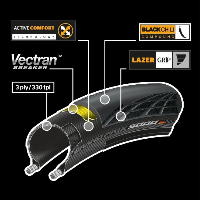 With Continental’s unique tread compound, which is produced only in Germany, they have revolutionised the sport of cycling. With the legendary BlackChili Compound Continental have answered the eternal question of the best balance of grip and rolling resistance for cycling.