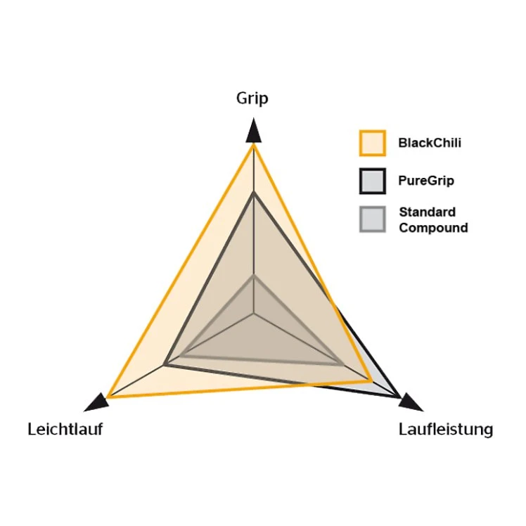 Regular test wins confirm the measureable and noticeable advantages for the cyclist, established in the laboratory and on the road. The latest polymers as well as specially developed carbon black particles and filler materials guarantee unique performance