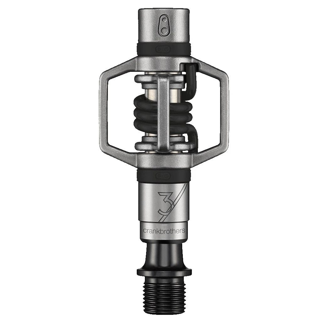Axle, body, spring and wings are completely made of stainless steel to guarantee a maximum durability and strength. Despite that, Crankbrothers didnŽt make any compromises when it comes to weight. With 280 g per pair the EggBeater 3 still is a lightweight MTB-pedal. Typical robust, open EggBeater Design in a steel look with black, blue or red spring.