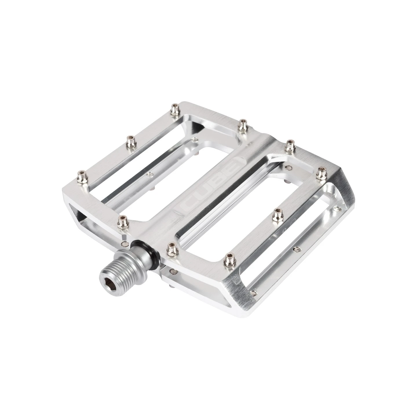 The Cube All Mountain pedals convince with low weight as well as a narrow profile thanks to CNC machining and concave footbed. The large aluminum body provides secure stand and the industrial as well as plain bearings ensure smooth running even on bumpy trails. The ten interchangeable pins per side guarantee the necessary grip.
