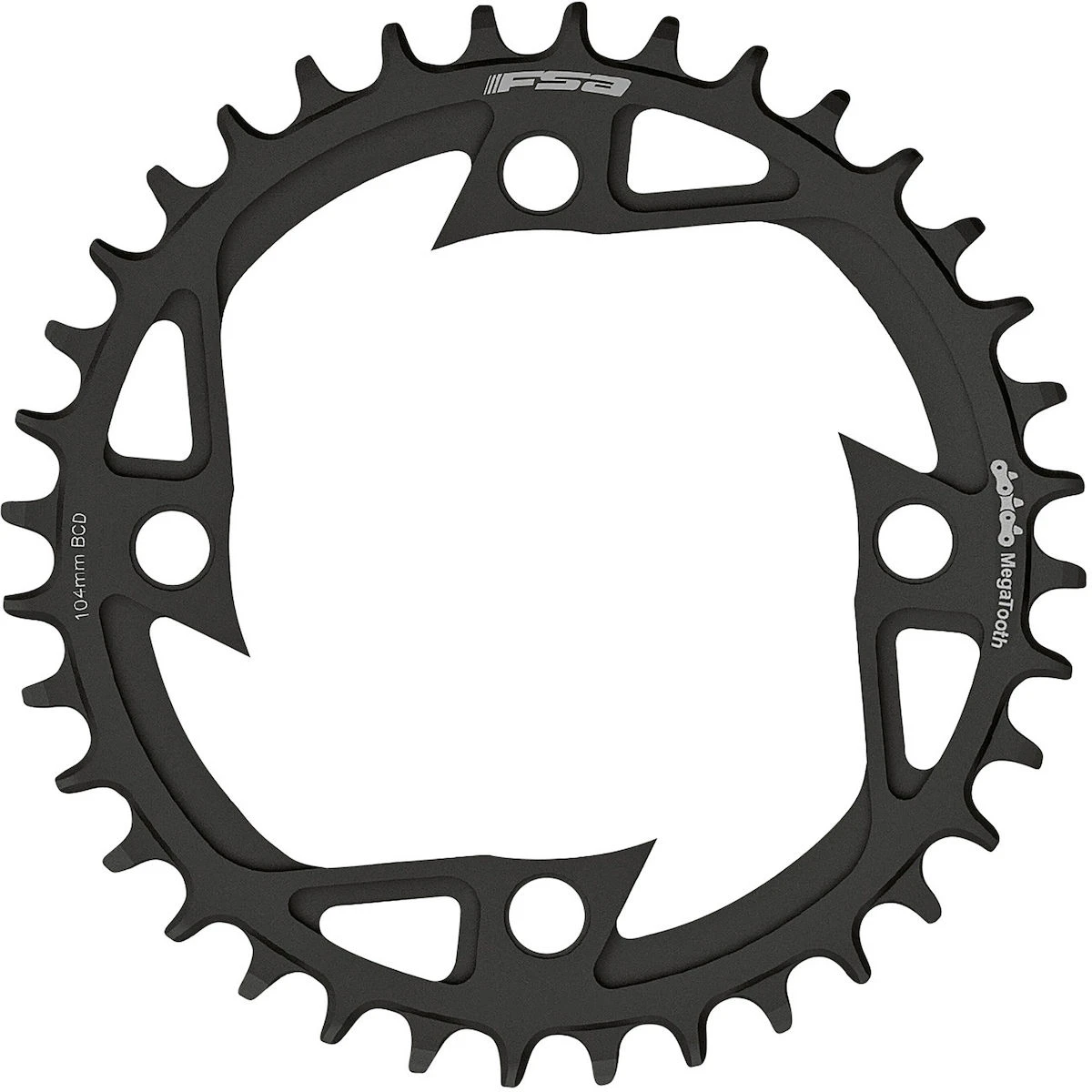 E-bike steel chainring with 104 mm bolt circle diameter (BCD) and Megatooth technology.