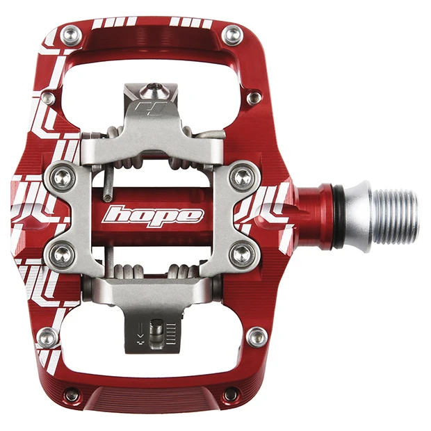 The Hope Union Trail clipless pedal features a fully CNC machined pedal body with 8 replaceable pins. The large platform offers the rider maximum power transfer and stability in all conditions.
