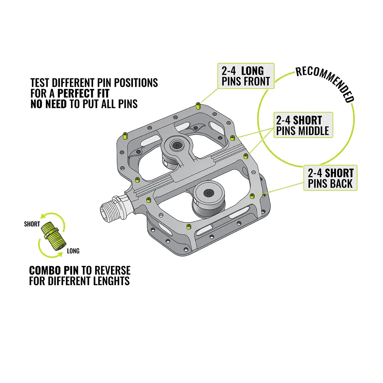 - pins can be mounted in 2 different lengths
