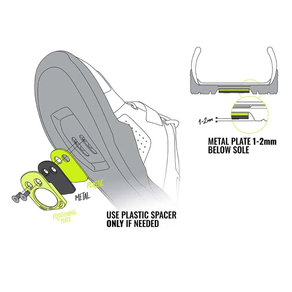 A Pair of plastic POSITIONING plates for 2 hole SPD shoes, for magped SPORT, SPORT2, ENDURO and ULTRA. Allows you to click on the exact same position on the pedal.