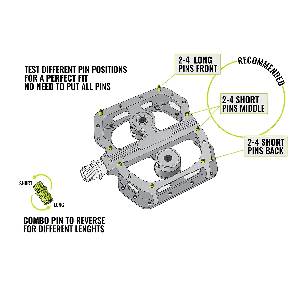 A set of 50 replacement pins including tools for mounting on magped Enduro and Enduro 2 pedals. The special feature of the pins is that they can be mounted in two different lengths.