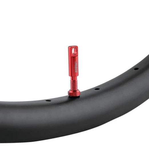 - In addition to the large opening in the base of the valve, there are four additional holes on the side. These prevent the valve from sticking due to larger particles or drying tubeless milk. Another effect of these holes is the compatibility with tire inserts.