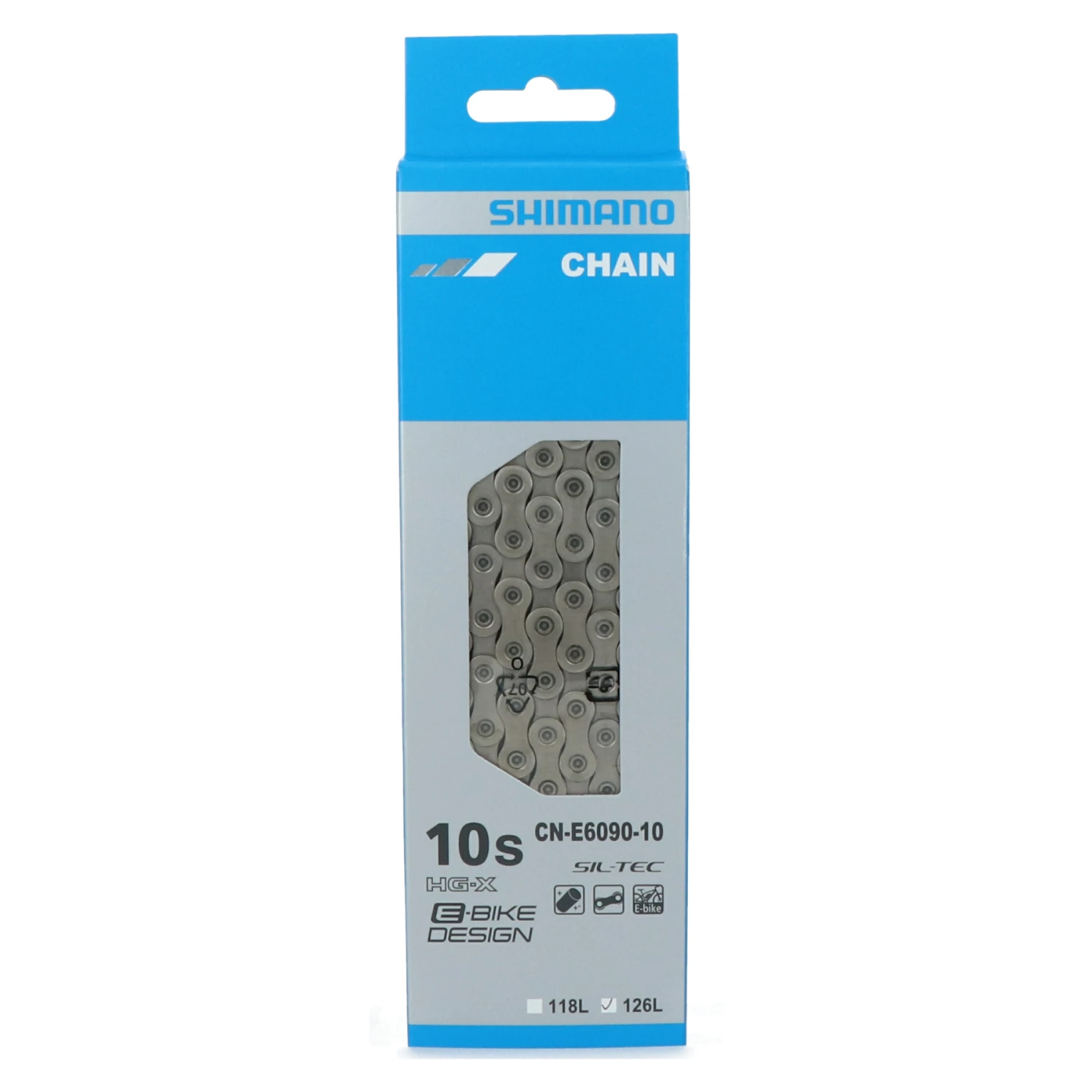 The Shimano STePS CN-E6090-10 chain was especially developed for use on E-Bikes. For this purpose, the 10-speed chain features a reinforced design and is more efficient, quieter and requires less maintenance thanks to SIL-TEC surface treatment.