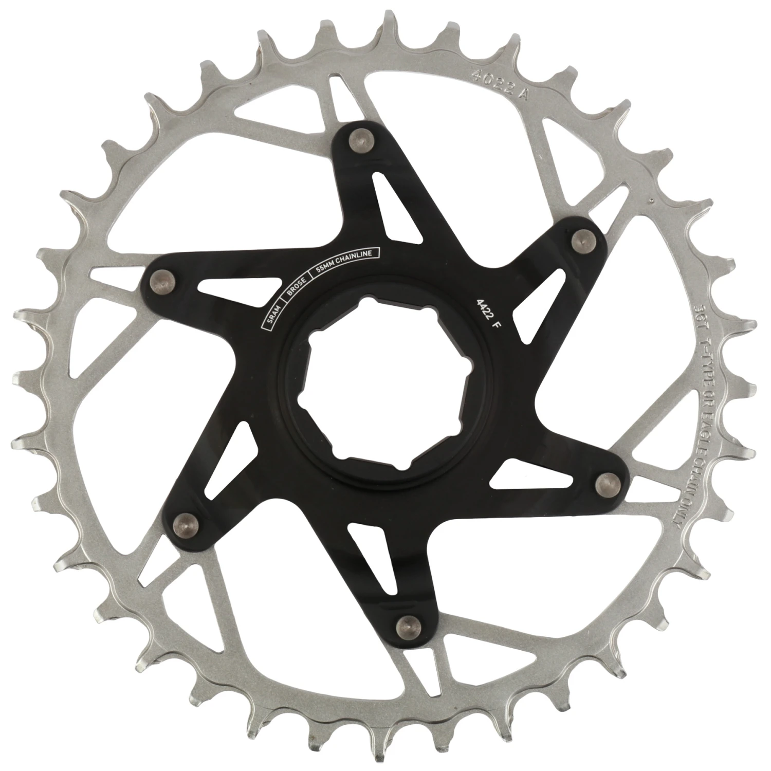 Lightweight and advanced. Developed specifically for use with Brose E-Bike motor systems, the XX Eagle chainring combines high performance with an appealing design aesthetic, without compromising on durability. To achieve this, the T-Type chainring for Eagle Transmission 1×12-speed drivetrain systems relies on the combination of aluminum spider and resistant steel tread.