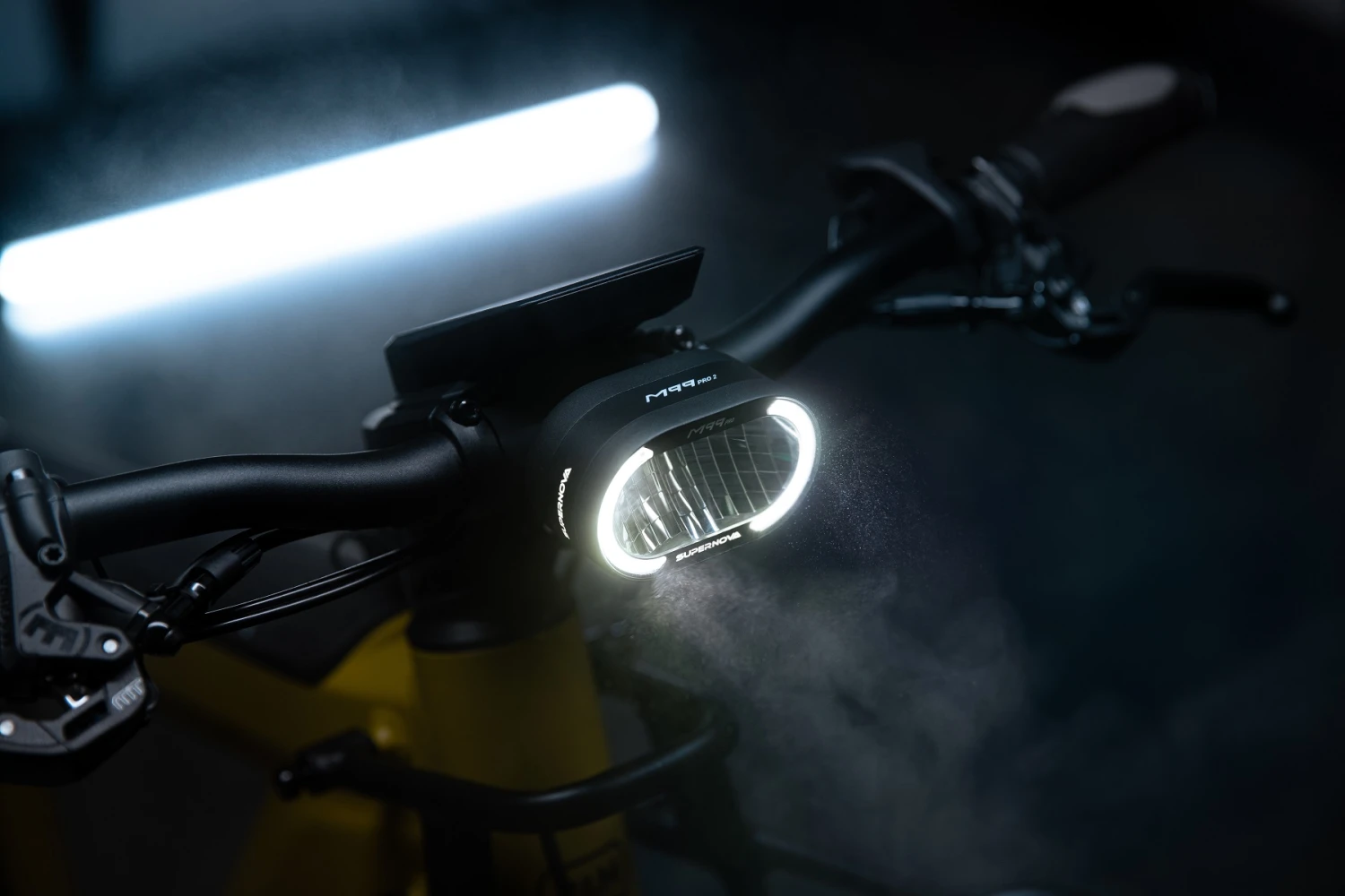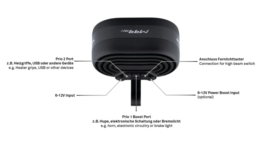 Scope of delivery: M99 Pro 2 front light with high beam button and Power Connector cable. A bracket for the front light must be purchased separately.