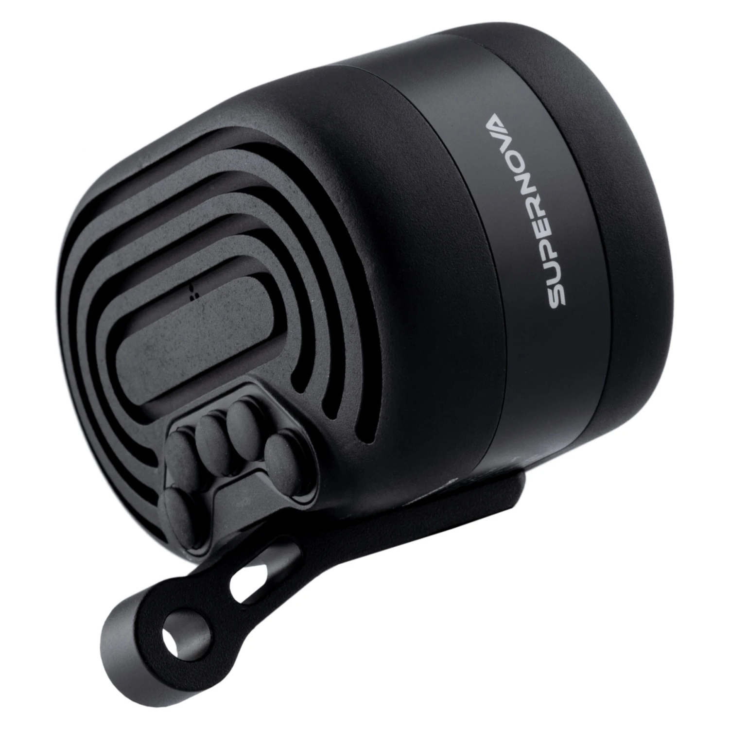 With this you are the king of the road: The M99 PRO 2 is the brightest E-bike front light legally approved in Germany. With a high beam of up to 3,000 lumens and 450 lux, the 16-LED matrix sets new standards. The front light has an intelligent control center that manages components with short-term high power consumption such as a horn or a USB. A light sensor automatically switches between the new SMD LED daytime running light module and the low beam in fractions of a second. The completely redesigned aluminum housing and tempered front glass protect the optics and electronics from all environmental impacts with protection level IP67. All materials are subjected to stringent quality controls during production of the front light in Gundelfingen, Germany. The front light is available in two versions – for fast E-bikes with an E-number and for 25 km/h bikes with a K-number approval.